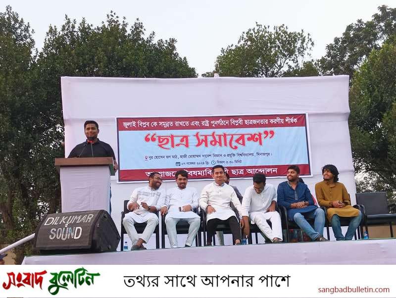 বৈষম্যবিরোধী ছাত্র আন্দোলনের আয়োজনে দিনাজপুরের হাজী মোহাম্মদ দানেশ বিজ্ঞান ও প্রযুক্তি বিশ্ববিদ্যালয়ে (হাবিপ্রবি) “জুলাই বিপ্লবকে সমুন্নত রাখতে এবং রাষ্ট্র পুনর্গঠনে বিপ্লবী ছাত্রজনতার করণীয়” শীর্ষক ছাত্র সমাবেশ অনুষ্ঠিত হয়েছে।