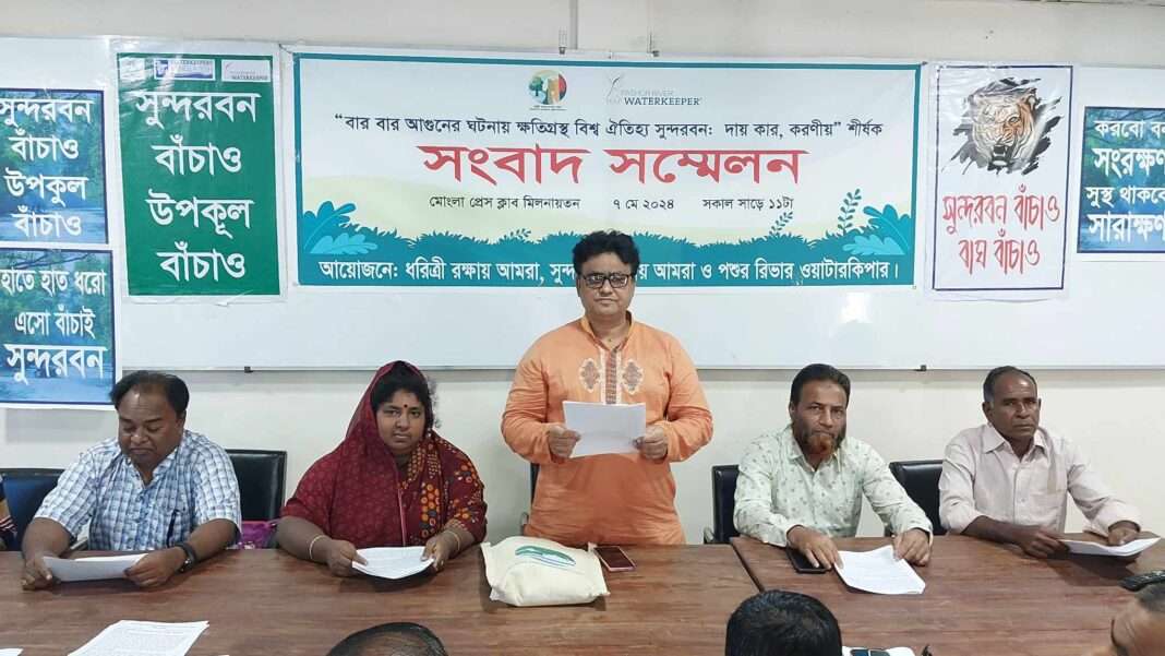 ৭ মে মঙ্গলবার সকালে মোংলা প্রেস ক্লাব মিলনায়তনে ধরিত্রী রক্ষায় আমরা, সুন্দরবন রক্ষায় আমরা ও পশুর রিভার ওয়াটারকিপারের আয়োজনে “বার বার আগুনের ঘটনায় ক্ষতিগ্রস্ত বিশ্ব ঐতিহ্য সুন্দরবনঃ দায় কার, করণীয়” শীর্ষক সংবাদ সম্মেলনে বক্তারা একথা বলেন।