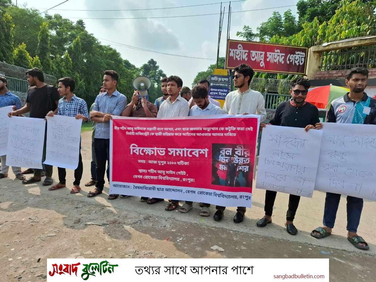 বীর আবু সাঈদকে সন্ত্রাসী আখ্যা এবং ছাত্র জনতার অভ্যুত্থান কে কটুক্তি করায় সেই ম্যাজিস্ট্রেটের বিরুদ্ধে স্থায়ীভাবে বহিষ্কার করে আইনের আওতায় বিক্ষোভ সমাবেশ করেছে বেগম রোকেয়া বিশ্ববিদ্যালয় সাধারণ শিক্ষার্থীরা।