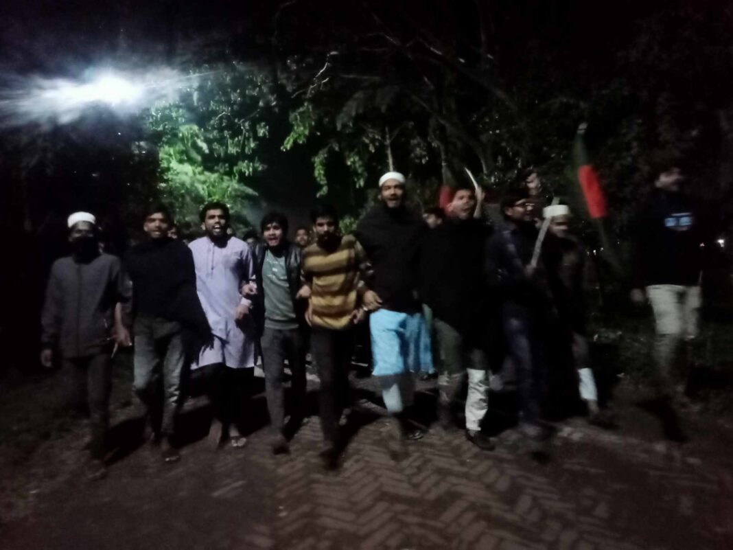 আজ সোমবার (২ ডিসেম্বর) রাত ৯:৩০ টায় বিশ্ববিদ্যালয়ের জয় বাংলা চত্বর থেকে বিক্ষোভ মিছিলটি বের করা হয়। এসময় শিক্ষার্থীরা মিছিল নিয়ে ক্যাম্পাসের বিভিন্ন সড়ক প্রদক্ষিণ করে জয় বাংলা চত্বরে এসে শেষ করেন। বিক্ষোভ মিছিল শেষে সেখানে তারা সংক্ষিপ্ত সমাবেশ করেন।