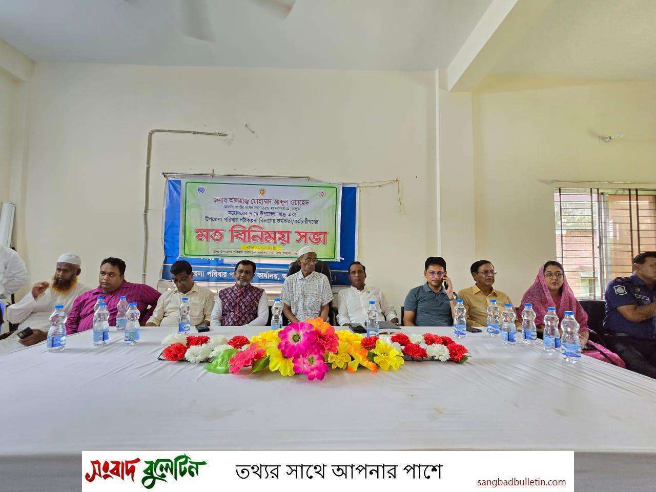 উপজেলা স্বাস্থ্য ও পরিবার পরিকল্পনা কর্মকর্তা ডা. হাসানুল হোসেনের সভাপতিত্বে ও মেডিকেল অফিসার ডা. মাসুদ পারভেজের সঞ্চালনায় মত বিনিময় সভায় প্রাধান অতিথি হিসেবে বক্তব্য রাখেন স্থানীয় সংসদ সদস্য আলহাজ্ব এম. এ. ওয়াহেদ।
