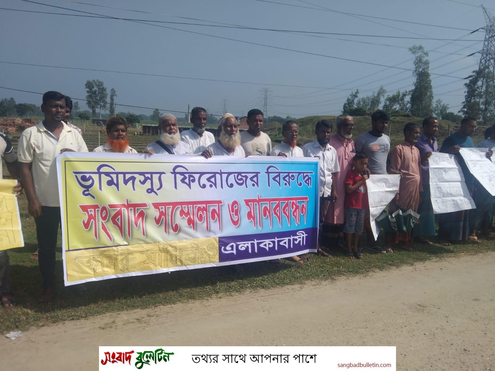 কৃষক লুৎফর রহমান অভিযোগ করে বলেন, তিনিসহ পনের জন কৃষকের তিন একর আঠাশ শতক জমি এবার ইট-ভাটায় লিজ দিতে অস্বীকৃতি জানিয়েছেন। সেইসঙ্গে জমির দখল ছেড়ে দিতে বলা হয়েছে তাকে। কিন্তু জোরপূর্বক দখলে রাখতে মরিয়া হয়ে উঠেছেন ভূমিদস্যু ফিরোজ আলী ও তার ভাড়াটে লোকজন। এমনকি বিগত ০৫ সেপ্টেম্বর জমির প্রকত মালিক কৃষকরা তাদের জমির দখল চাইলে তাদের প্রাণনাশের হুমকি-ধামকি দেওয়া হয়েছে। এমন পরিস্থিতিতে ভুক্তভোগীরা চরম নিরাপত্তাহীনতার মধ্যে দিনাতিপাত করছেন। মানববন্ধনে ওই ভূমিদস্যুর কবল থেকে নিজের ভিটে-মাটি রক্ষায় সরকারের সংশ্লিষ্টদের প্রতি জোর দাবি জানান তিনি। তবে এসব বিষয়টি সম্পর্কে বক্তব্য জানতে চাইলে অভিযুক্ত ফিরোজ আলী নিজেকে নির্দোষ দাবি করেন। সেইসঙ্গে এসব অপপ্রচারে বিভ্রান্ত না হওয়ার জন্য সাংবাদিকদের প্রতি অনুরোধ করেন।