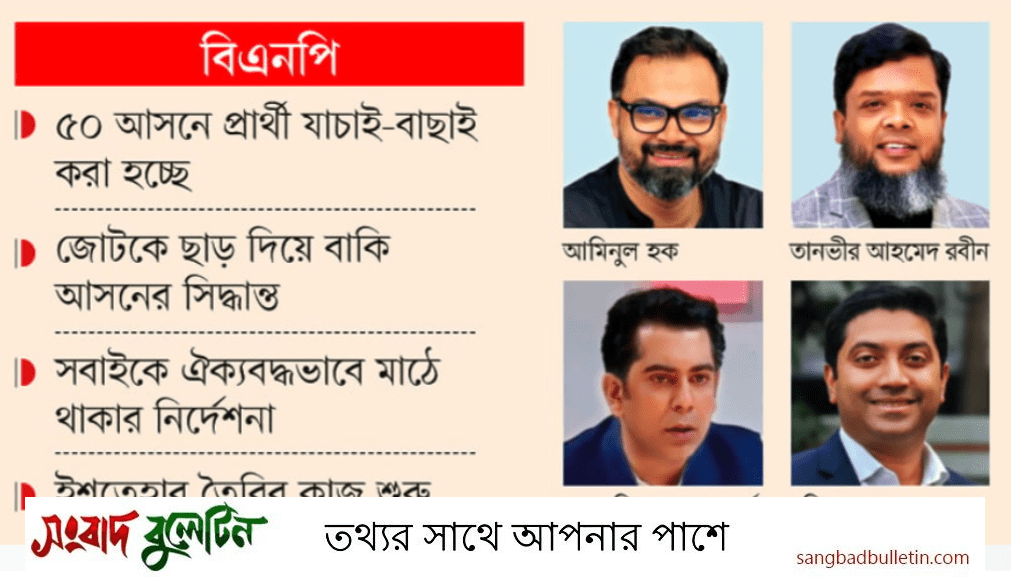 বিএনপির স্থায়ী কমিটির সদস্য সালাহউদ্দিন আহমেদ বলেন, নির্বাচনের প্রস্তুতি হিসেবে বিএনপি দীর্ঘদিন ধরে কাজ করছে। এর মধ্যে মাঠ জরিপ, তৃণমূল নেতাকর্মীদের মতামত সংগ্রহসহ কয়েক ধরনের উদ্যোগ চলছে। এসব প্রক্রিয়ায় যে প্রার্থী এগিয়ে থাকছেন, তাঁকে দল মনোনয়ন দেবে। তবে এখনই সবকিছু চূড়ান্ত হয়ে যায়নি।