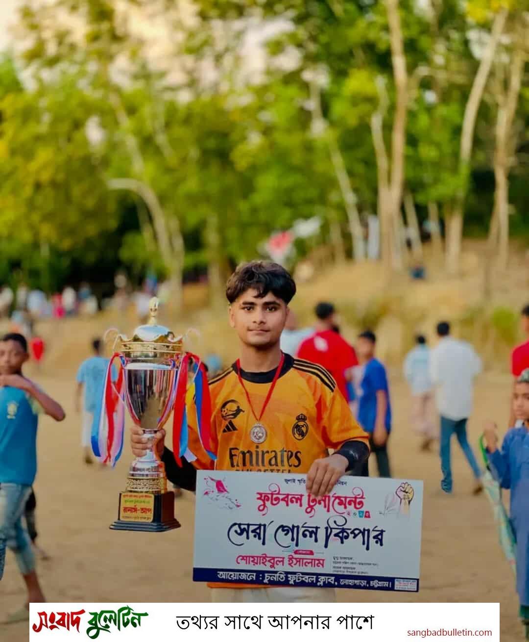 ফাইনালে হেরে গিয়ে তোতালে বাড়ির শেষ বাঁশি শোনার পর বারবার গোলপোস্টের দিকে তাকিয়ে আন মরা ভাবে কি যেন ভাবছেন অত্র টুলামেন্টের সেরা গোলকিপার শেখ শিহাব হয়তো গোলটা মেনে নিতে পারছেন না তিনি চোখের কোনায় হালকা জলে শেষবারের মতো পুরস্কারটা হাতে নিলেন শেখ শিহাব ভালো খেলার পরও বিদায় সাতঘর শাহ আতাউল্লাহ স্মৃতি ফুটবল একাদশের