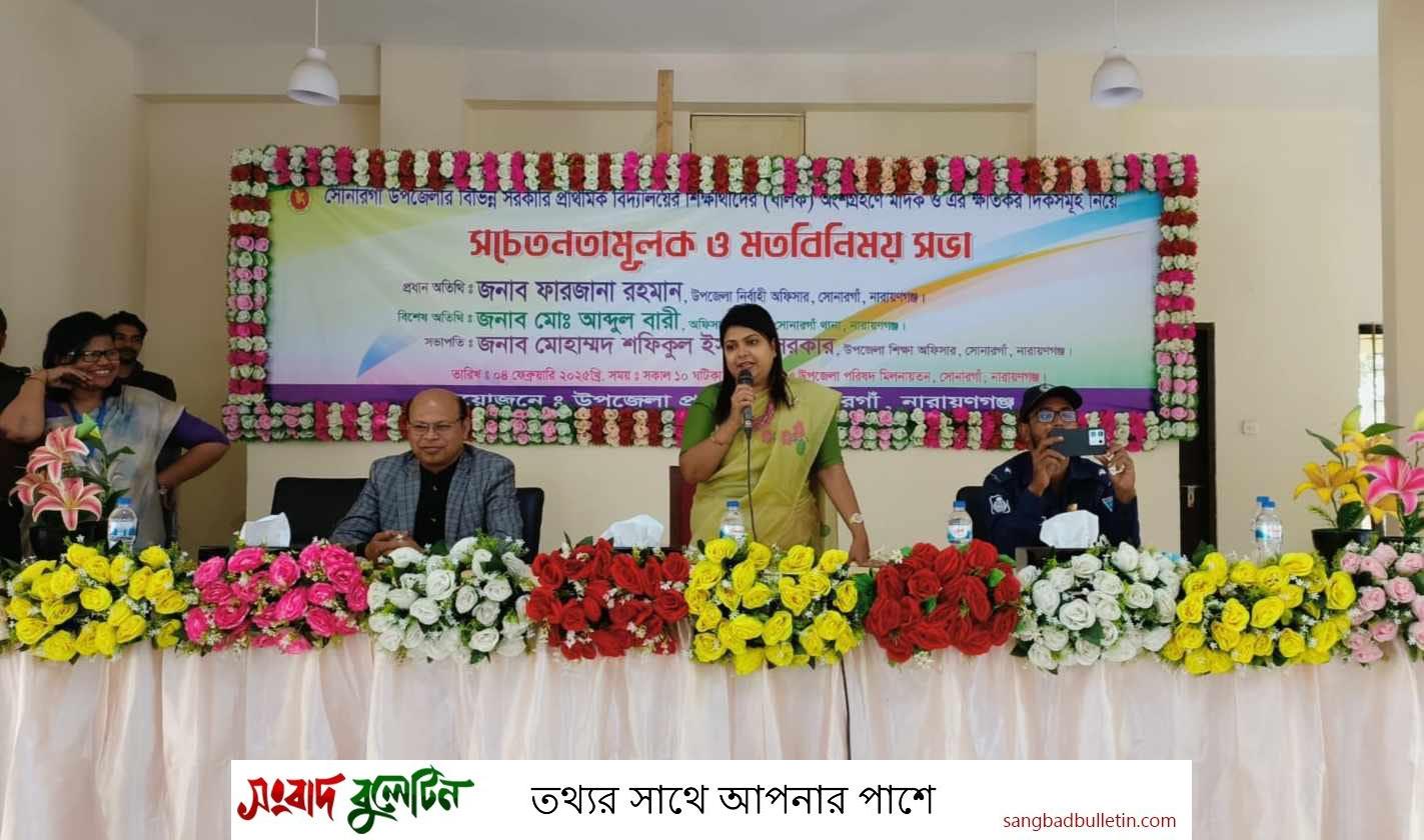 সোনারগাঁ উপজেলার বিভিন্ন সরকারি প্রাথমিক বিদ্যালয়ে মঙ্গলবার সকালে শিক্ষার্থীদের অংশ গ্রহনে মাদক এবং এর ক্ষতিকারক দিক নিয়ে সচেতনতামূলক মতবিনিময় সভা অনুষ্ঠিত হয়েছে।