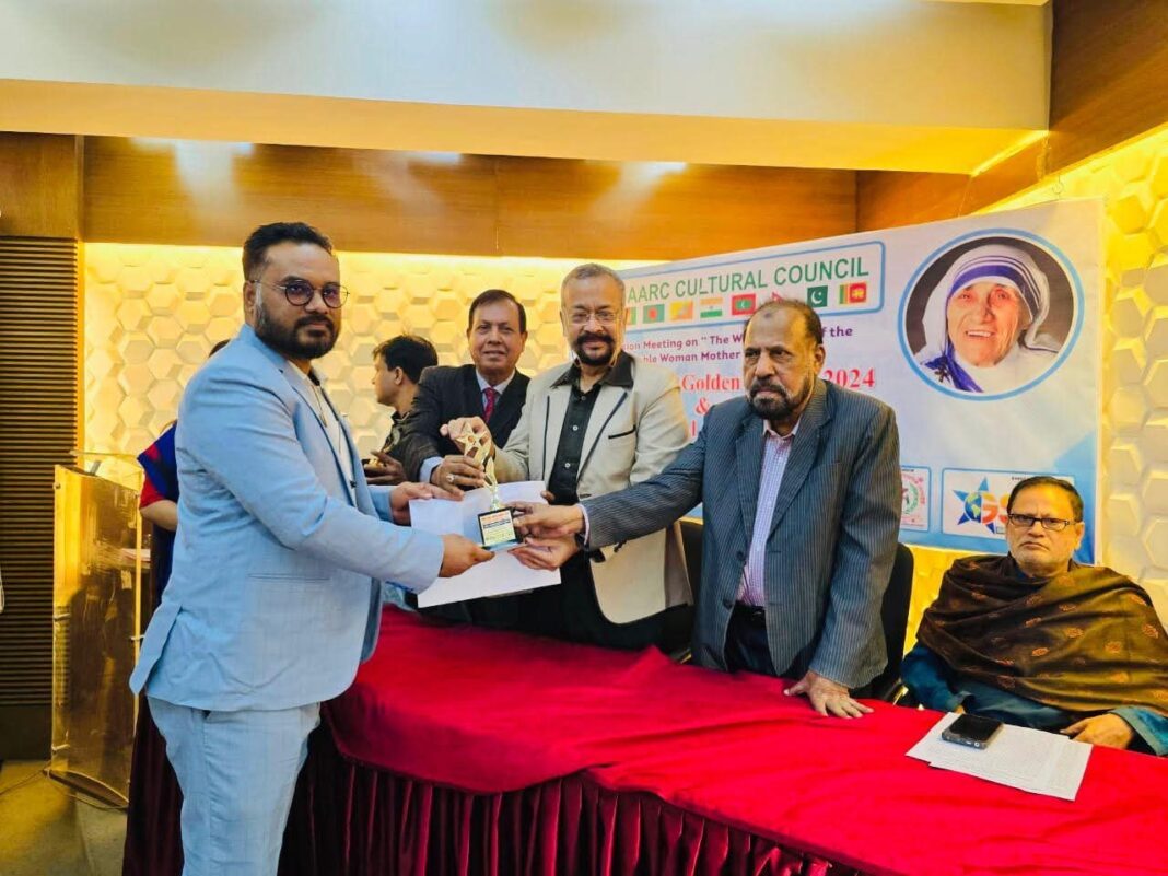 এ্যাওয়ার্ড ও সনদ প্রদানের আগে ‘শতাব্দীর শ্রেষ্ঠ মহীয়সী নারী মাদার তেরেসার কর্মময় জীবন’ সংক্ষিপ্ত আলোচনা সভায় বাংলাদেশ কৃষি বিশ্ববিদ্যালয়ের কৃষি অনুষদের সাবেক ডিন প্রফেসর ড. এম. এ. সাত্তারের সভাপতিত্বে ও সাংবাদিক মঞ্জুর হোসেন ঈসার সঞ্চালনায় স্বাগত বক্তব্য রাখেন সার্ক কালচারাল কাউন্সিলের সাধারণ সম্পাদক মো. আর. কে. রিপন।
