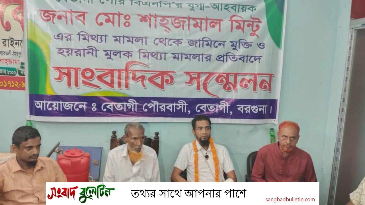 বরগুনা বেতাগী পৌর বিএনপি যুগ্না আহবায়ক শাহাজামাল মিন্টুর বিরুদ্ধে ষড়যন্ত্রমূলক মিথ্যা চাঁদাবাজির মামলার অভিযোগে বিরুদ্ধে বেতাগীতে সাংবাদিক সম্মেলন করেন।