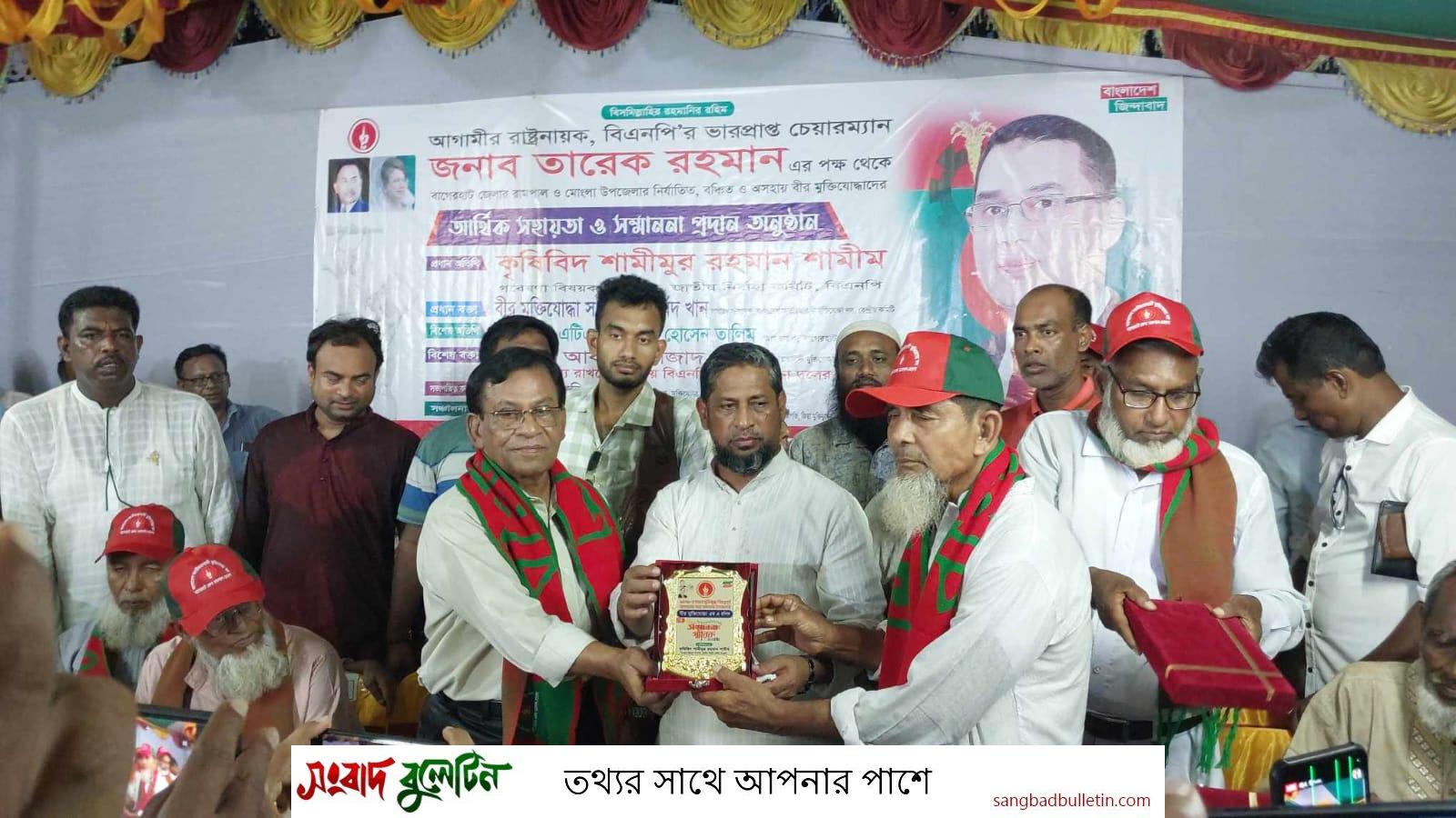 মোংলা সংবাদদাতা: বিএনপির ভারপ্রাপ্ত চেয়ারম্যান তারেক রহমানের নির্দেশে বাগেরহাট জেলার মোংলা-রামপাল উপজেলার নির্যাতিত, বঞ্চিত ও অসহায় ৪০ জন বীর মুক্তিযোদ্ধাদের আর্থিক সহায়তা ও সম্মাননা প্রদান করেন বিএনপি'র কেন্দ্রীয় কমিটির গবেষণা বিষয়ক সম্পাদক কৃষিবিদ শামিমুর রহমান শামীম।