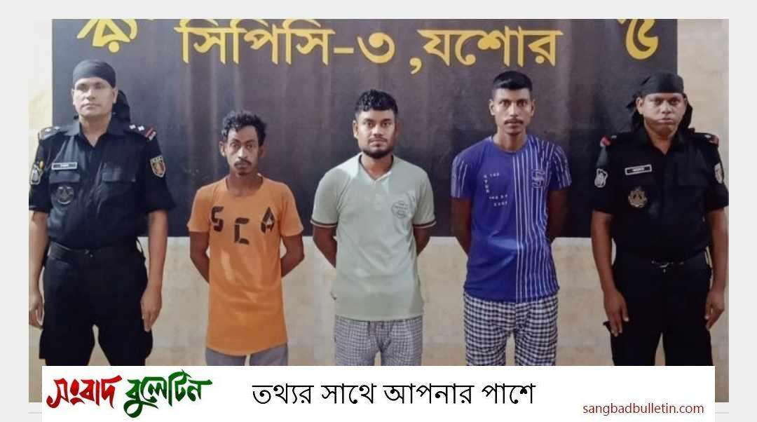 তারা হলেন, মণিরামপুর উপজেলার ঘিবা গ্রামের আকরাম হোসেন (২৭), ঝিকরগাছা উপজেলার করিমআলী গ্রামের বিপ্লব হোসেন (২৬) ও সাতক্ষীরার কলারোয়া উপজেলার কাজিরহাট গ্রামের ফিরোজ আলী (২৫)।