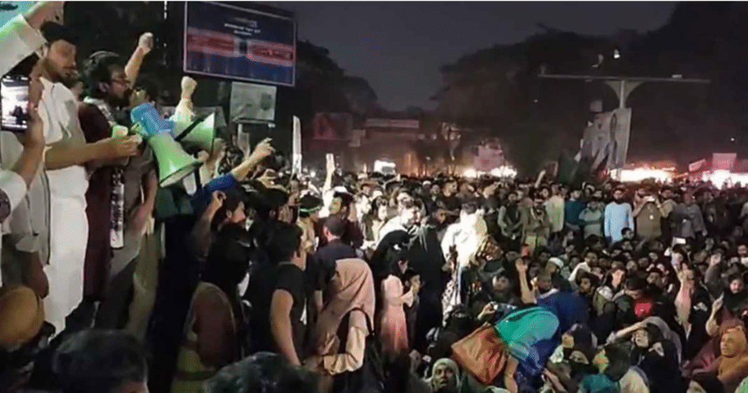 বিকেল ৫টার দিকে রাজু ভাস্কর্য থেকে একটি মিছিল নিয়ে ইনকিলাব মঞ্চের নেতাকর্মীরা শাহবাগ মোড়ে পৌঁছে সড়ক অবরোধ করে বিক্ষোভ শুরু করেন। এই সময় তারা ‘হাদি তোমায় দেখা যায়’, ‘বাংলাদেশের জনগণ নেমে আসুন’সহ বিভিন্ন প্রতিবাদী স্লোগান দেন।