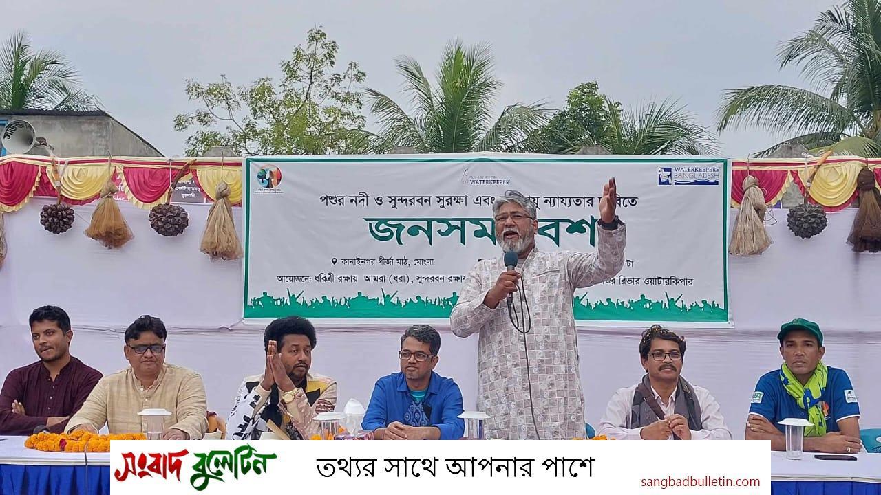 ২৯ নভেম্বর শুক্রবার বিকেলে কানাইনগর গীর্জা মাঠে পশুর নদী ও সুন্দরবন সুরক্ষা এবং জলবায়ু ন্যায্যতার দাবিতে ধরিত্রী রক্ষা আমরা (ধরা), সুন্দরবন রক্ষায় আমরা, ওয়াটারকিপার্স বাংলাদেশ ও পশুর রিভার ওয়াটারকিপার আয়োজিত জনসমাবেশে বক্তারা একথা বলেন।