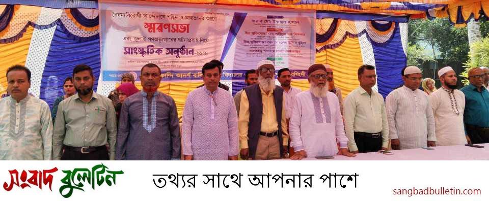 রায়পুরায় উপজেলার দৌলতকান্দি আদর্শ বালিকা উচ্চ বিদ্যালয় ও কলেজ সবুজ চত্বরে বৈষম্যবিরোধী ছাত্র আন্দোলনে শহীদ ও আহতদের স্মরণে স্মরণসভা ও জুলাই মাসে গণঅভ্যুত্থানের ঘটনাপ্রবাহ নিয়ে সাংস্কৃতিক অনুষ্ঠান অনুষ্ঠিত হয়েছে।