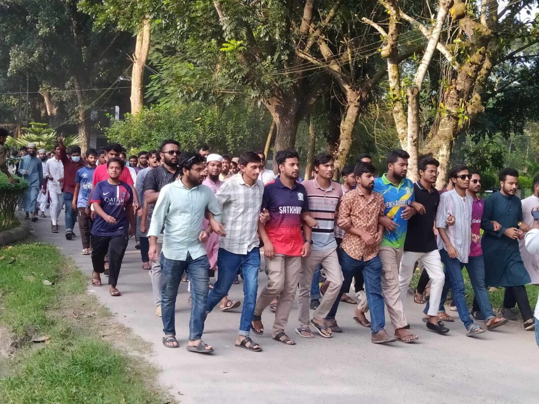 ইসলামী বিশ্ববিদ্যালয়ে রাষ্ট্রপতি মো. সাহাবুদ্দিনের পদত্যাগ এবং ছাত্রলীগকে নিষিদ্ধ করার দাবিতে বিক্ষোভ করেছে বৈষম্যবিরোধী ছাত্র আন্দোলন। মঙ্গলবার বিকেলে বিশ্ববিদ্যালয়ের বটতলায় সমবেত হয়ে আন্দোলনকারীরা বিক্ষোভ মিছিল বের করে। পরে বিশ্ববিদ্যালয়ের গুরুত্বপূর্ণ সড়ক প্রদক্ষিণ করে প্রশাসন ভবনের সামনে সমাবেশ করে।