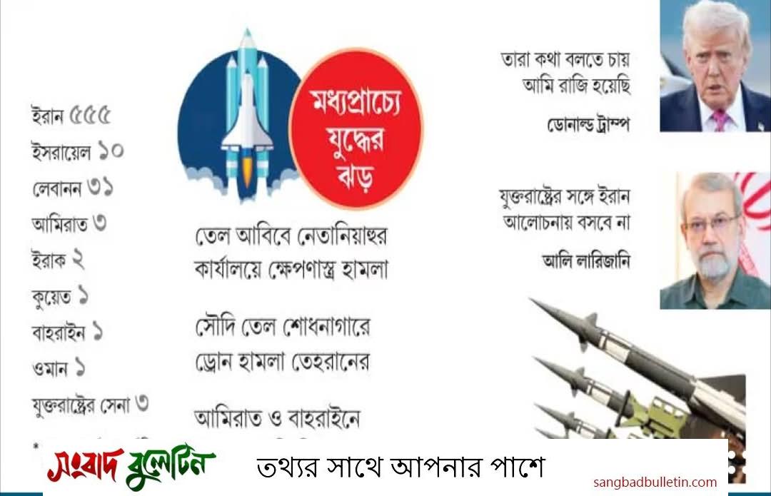 ইরানে শনিবার থেকে শুরু হওয়া বিমান হামলায় নিহতের সংখ্যা বেড়ে ৫৫৫ জনে দাঁড়িয়েছে। গতকাল ইরানের রেড ক্রিসেন্টের বরাত দিয়ে দেশটির বার্তা সংস্থা ফারস নিউজ এজেন্সি এ তথ্য নিশ্চিত করেছে। অন্যদিকে, কুয়েতে যুক্তরাষ্ট্রের তিনটি এফ-১৫ যুদ্ধবিমান ভূপাতিত হয়েছে। যুক্তরাষ্ট্রের দাবি, কুয়েতের নিজস্ব আকাশ প্রতিরক্ষা ব্যবস্থা ‘ভুলবশত’ যুদ্ধবিমানগুলো ভূপাতিত করেছে।