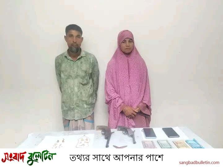আটককৃতরা হলেন তারা হলেন—চট্টগ্রামের বাঁশখালীর গুলুল্যাখালী মাইজপাড়া গ্রামের বাসিন্দা, বর্তমানে বান্দরবানের লামা উপজেলার আজিজনগর হিমছড়িপাড়া এলাকায় বসবাসকারী মো. মনজুর আলম (৫২) এবং তার স্ত্রী হাছিনা বেগম (৪০) ডাকাত মঞ্জুর এর দেহ তল্লাশি করে তার ডান হাতে থাকা একটি সাদা প্লাস্টিকের বাজারের ব্যাগের ভিতর রাখা কাঁচা সবজির নিচে ব্যাগের তলায় ০২টি দেশীয় তৈরি এলজি (আগ্নেয়াস্ত্র), এবং ০২। হাছিনা বেগম (৪০)-এর তার ডান হাতে থাকা ০১টি ঘিয়ে ও সাদা রঙের ছোট হাত ব্যাগ তল্লাশি করে ব্যাগের ভিতর হতে ০৫(পাঁচ) রাউন্ড ৭.৬২ চায়না গুলি, ০১ভরি ৭পয়েন্ট স্বর্ণ (যার মধ্যে কানের দুল-০৫টি কানের রিং-০৪টি, আংটি-০২টি), ০১ভরি ১২আনা ৩পয়েন্ট সিটি গোল্ড (যার মধ্যে লকেট যুক্ত চেইন-০১টি, কানের দুল-০৬টি), নগদ-৪৮,৫০০ টাকা, ২টি মোবাইল ফোন।