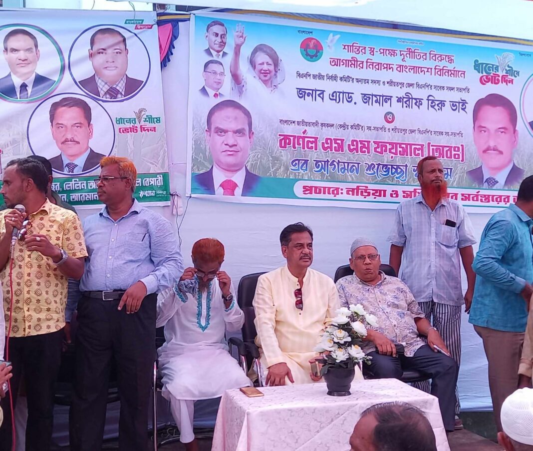 শান্তির পক্ষে দুর্নীতির বিরুদ্ধে আগামী নিরাপদ বাংলাদেশ বিনির্মাণে শরীয়তপুর নড়িয়া উপজেলা পৌরসভা , সখিপুর পথসভা ও গণসংযোগ করেন বাংলাদেশ জাতীয়তাবাদী কৃষক দলের কেন্দ্রীয় কমিটির সহ সভাপতি কর্নেল এসএম ফয়সাল (অবঃ)।