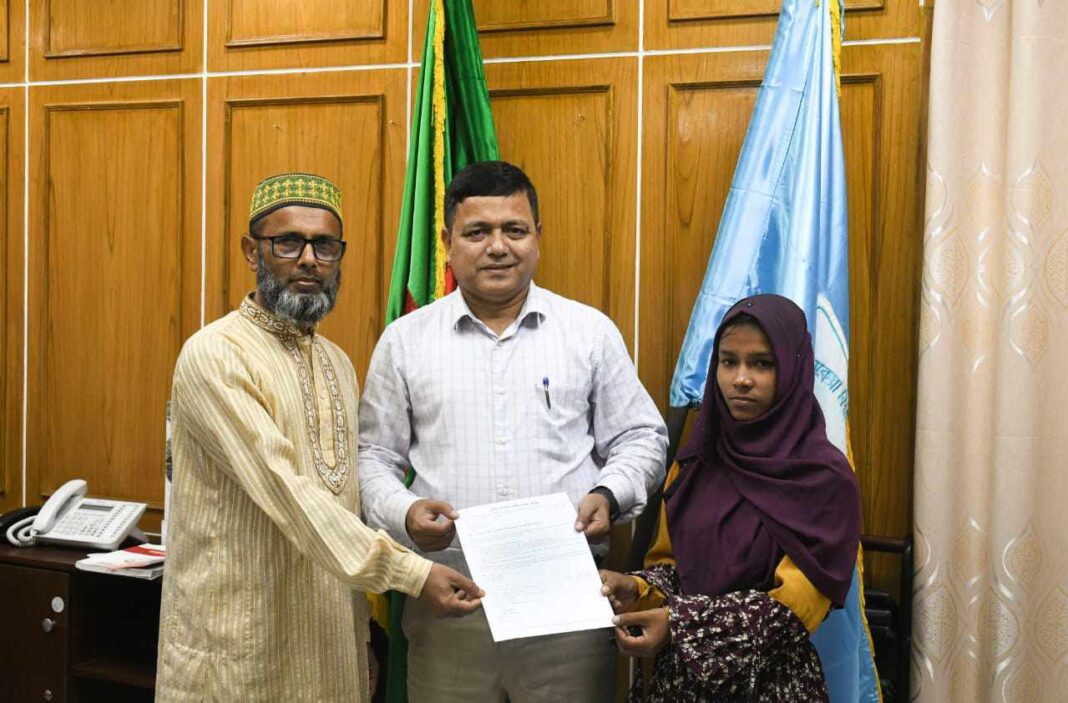 বুধবার ০৯ অক্টোবর অপরাহ্ণে বিশ্ববিদ্যালয়ের উপাচার্য ড. শওকত আলী সেমিনার আ্যটেনডেন্ট পদে সুমি খাতুনকে নিয়োগ পত্রটি তুলে দেন।