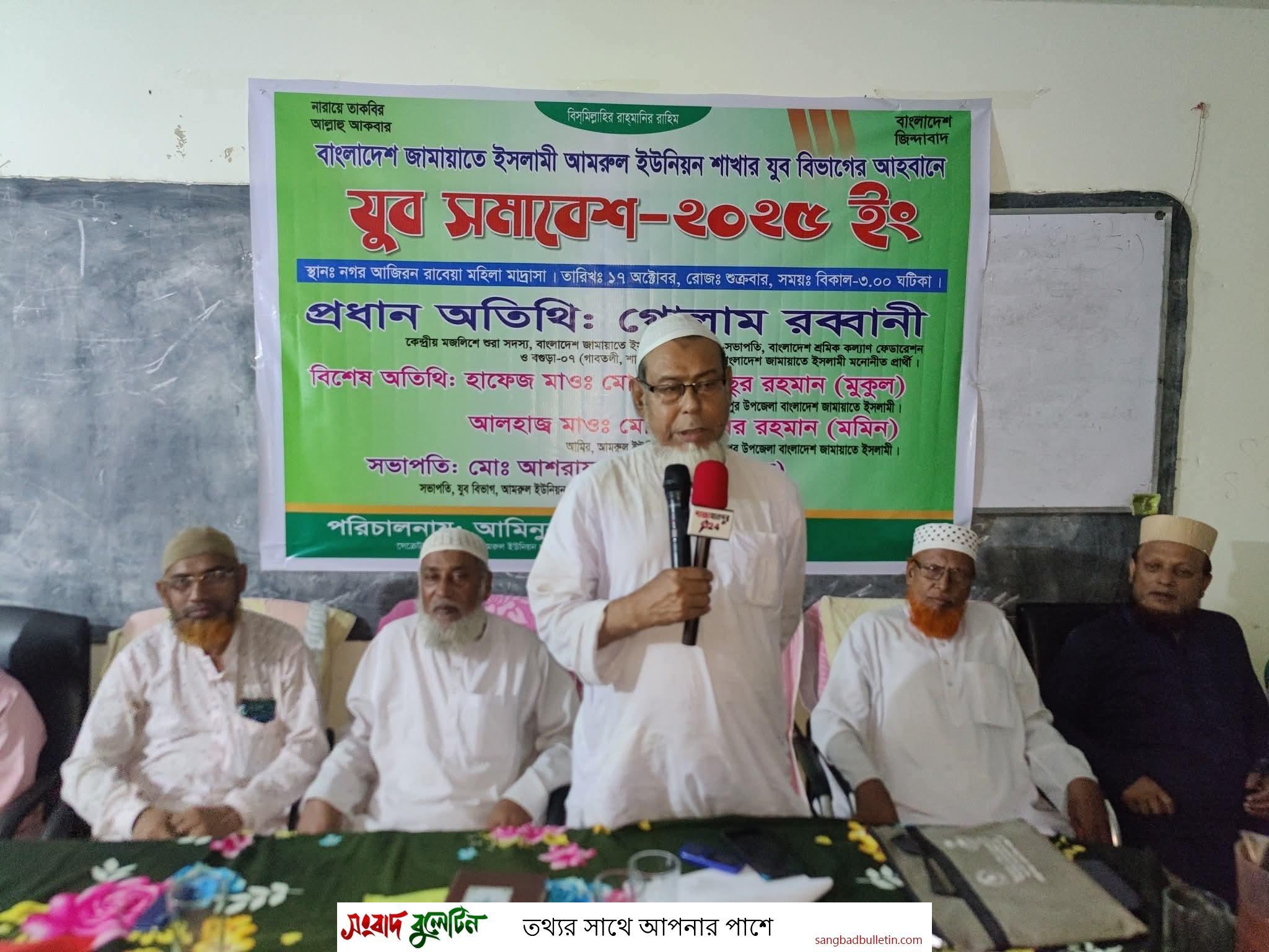 বগুড়ার শাজাহানপুর উপজেলার আমরুল ইউনিয়নের রাধানগর এলাকায় বাংলাদেশ জামায়াতে ইসলামী আমরুল ইউনিয়ন শাখার যুব বিভাগের উদ্যোগে এক যুব সমাবেশ অনুষ্ঠিত হয়েছে। শুক্রবার (১৭ অক্টোবর) বিকেল ৪টায় নগর আজিরন রাবেয়া মহিলা আলিম মাদরাসা প্রাঙ্গণে এ সমাবেশ অনুষ্ঠিত হয়।