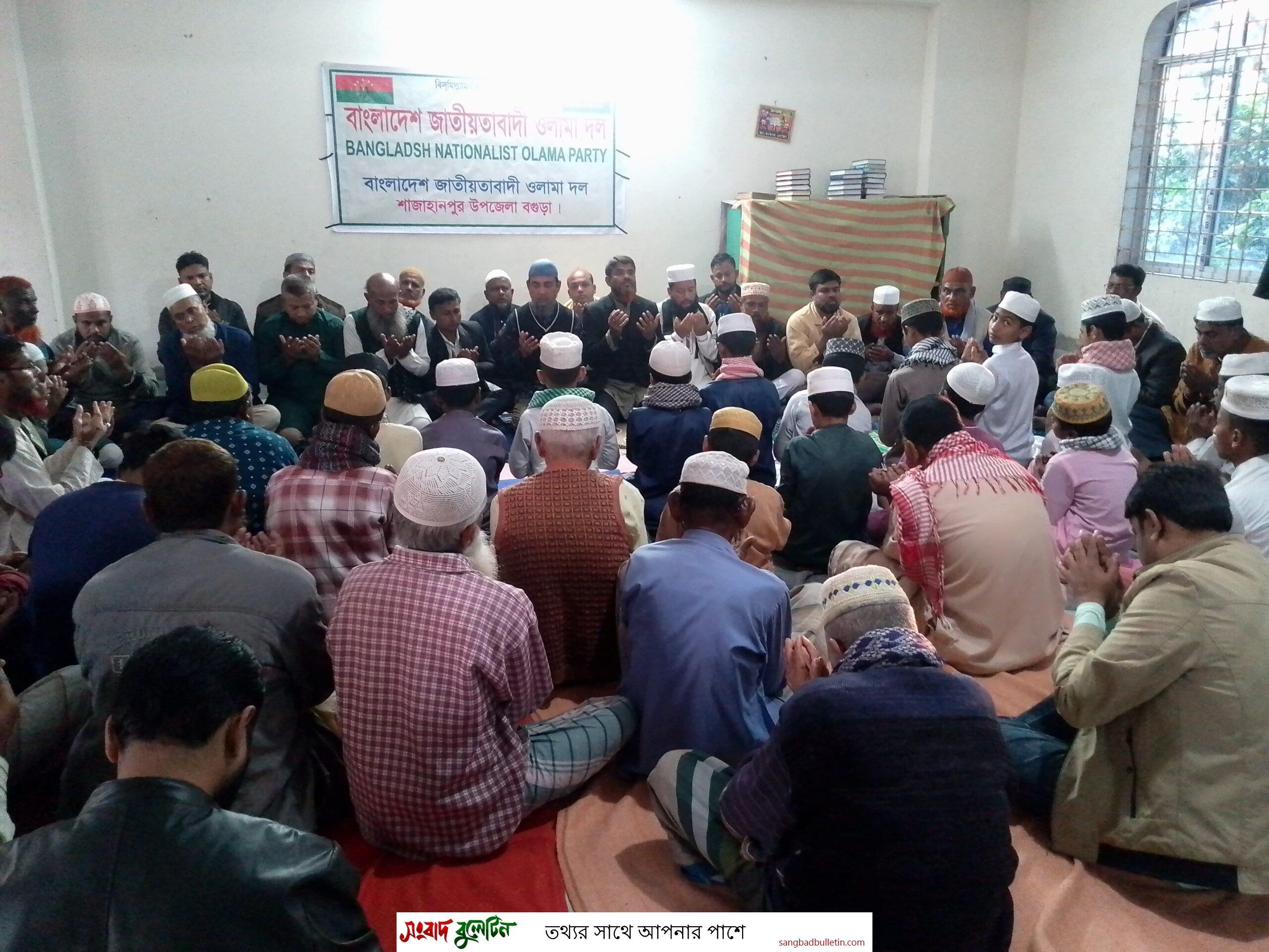 বগুড়ার শাজাহানপুর উপজেলার চোপিনগর ইউনিয়ন ওলামা দলের উদ্যোগে উপজেলা ওলামা দলের আহ্বায়ক হাফেজ মাওলানা জাহিদুর রহমান আল-জাহিদের সভাপতিত্বে, ইউনিয়ন বিএনপির সভাপতি আনোয়ার হোসেন মাস্টারের সঞ্চালনায় 'বেগম খালেদা জিয়ার' সুস্থতা কামনায় দোয়া মাহফিল অনুষ্ঠিত হয়েছে।