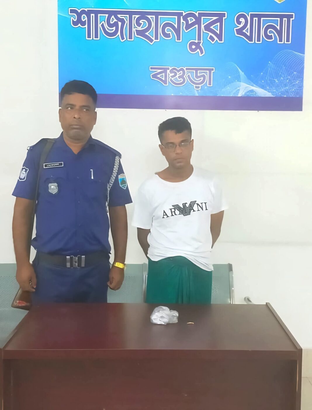 শাজাহানপুর থানার এসআই (নিঃ) মো. রাসেল আহম্মেদের নেতৃত্বে পুলিশ অভিযান চালিয়ে স্থানীয় মো. আবুল খায়েরের কাঁচামালের ঘরের পূর্ব পাশের পাকা রাস্তা থেকে আজিম উদ্দিনকে আটক করে। এ সময় তার কাছ থেকে ১০০ গ্রাম গাঁজা ও ১০ পিস ইয়াবা উদ্ধার করা হয়।