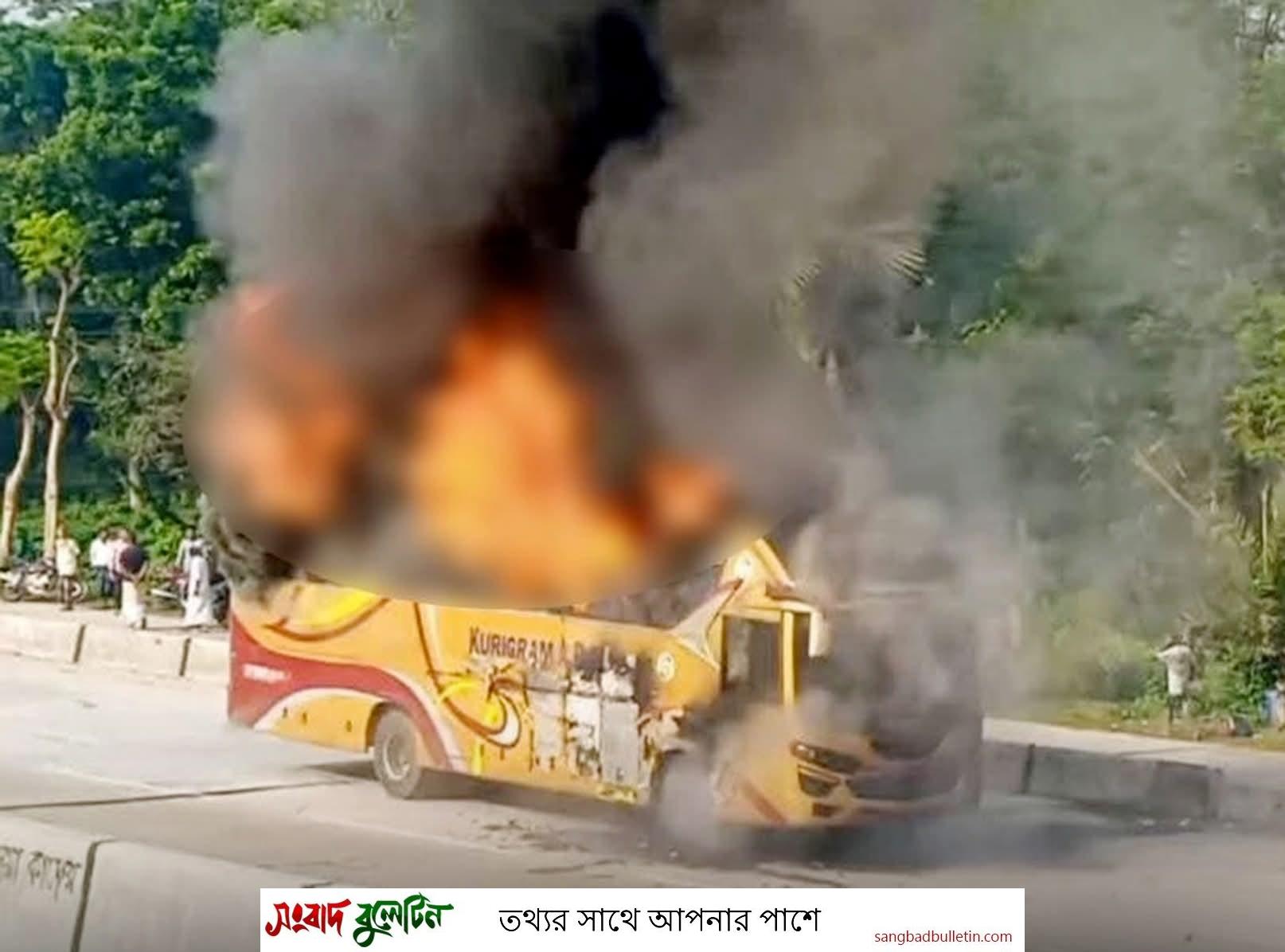শাজাহানপুরে চলন্ত বাসে আগুন, অল্পের জন্য রক্ষা পেলেন যাত্রীরা