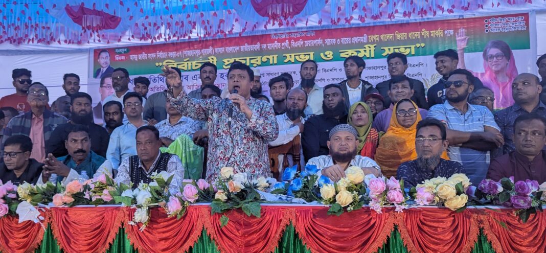আসন্ন জাতীয় সংসদ নির্বাচনকে সামনে রেখে শাজাহানপুর–গাবতলী আসনে বাংলাদেশ জাতীয়তাবাদী দল (বিএনপি) মনোনীত প্রার্থী দলের চেয়ারপারসন ও সাবেক তিনবারের প্রধানমন্ত্রী বেগম খালেদা জিয়ার ধানের শীষ মার্কার পক্ষে প্রচারণা ও কর্মীসভা অনুষ্ঠিত হয়েছে।
