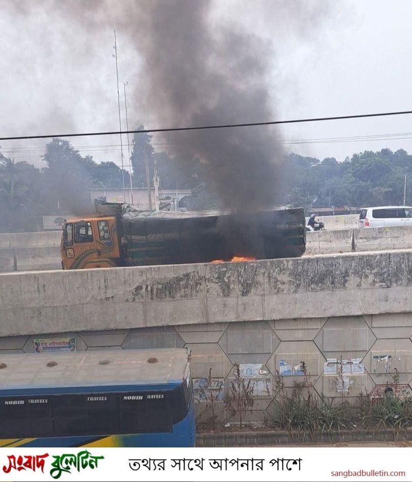 প্রত্যক্ষদর্শী শিবলু মিয়া জানান, ট্রাকটি বগুড়া থেকে শেরপুরের দিকে যাচ্ছিল। একই সময় দ্রুতগতিতে একটি মোটরসাইকেলে দুইজন আরোহী একই দিকে যাচ্ছিলেন। ট্রাকটি অতিক্রম করার সময় মোটরসাইকেলটি নিয়ন্ত্রণ হারিয়ে ট্রাকের নিচে ঢুকে পড়ে। এতে মোটরসাইকেল চালক ঘটনাস্থলেই নিহত হন এবং মোটরসাইকেলে আগুন ধরে যায়। আগুন ছড়িয়ে পড়ে ট্রাকেও, ফলে ট্রাকটি আংশিক ক্ষতিগ্রস্ত হয়।