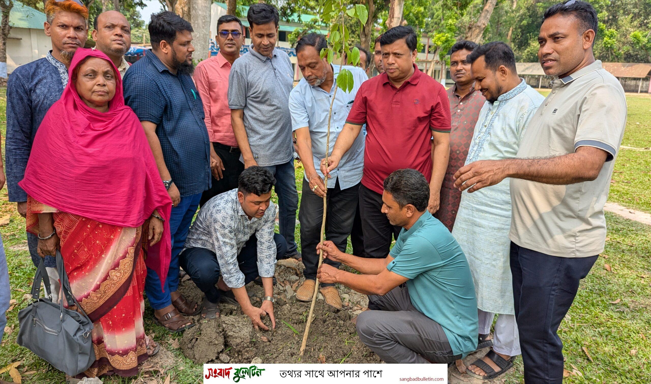 শাজাহানপুরে ডেমাজানী বালিকা স্কুলে বৃক্ষ রোপন করলেন বিএনপি নেতা শাহীন