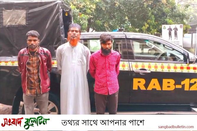 গ্রেফতারকৃত আসামীরা হলেন ১। মোঃ সাইফুল ইসলাম (৪৭), পিতা- মোঃ সাত্তার আলী, সাং- বেতগাড়ী, থানা- শাজাহানপুর, জেলা- বগুড়া, ২। মোঃ মহিদুল ইসলাম (২৯), পিতা- মৃত মজিবর রহমান, সাং- তালোড়া (উত্তরপাড়া), থানা- দুপচাঁচিয়া, জেলা- বগুড়া, ৩। মোঃ রিপন (২৬), পিতা- আব্দুল্লাহ, সাং- সুজাবাদ, থানা- শাজাহানপুর, জেলা- বগুড়া।