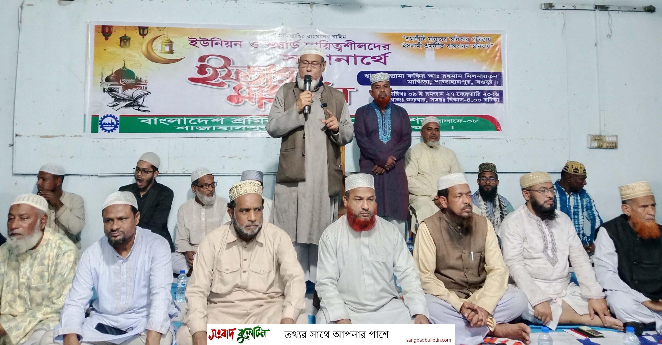 বগুড়ার শাজাহানপুর উপজেলায় বাংলাদেশ শ্রমিক কল্যাণ ফেডারেশন-এর উদ্যোগে এক ইফতার মাহফিল অনুষ্ঠিত হয়েছে।