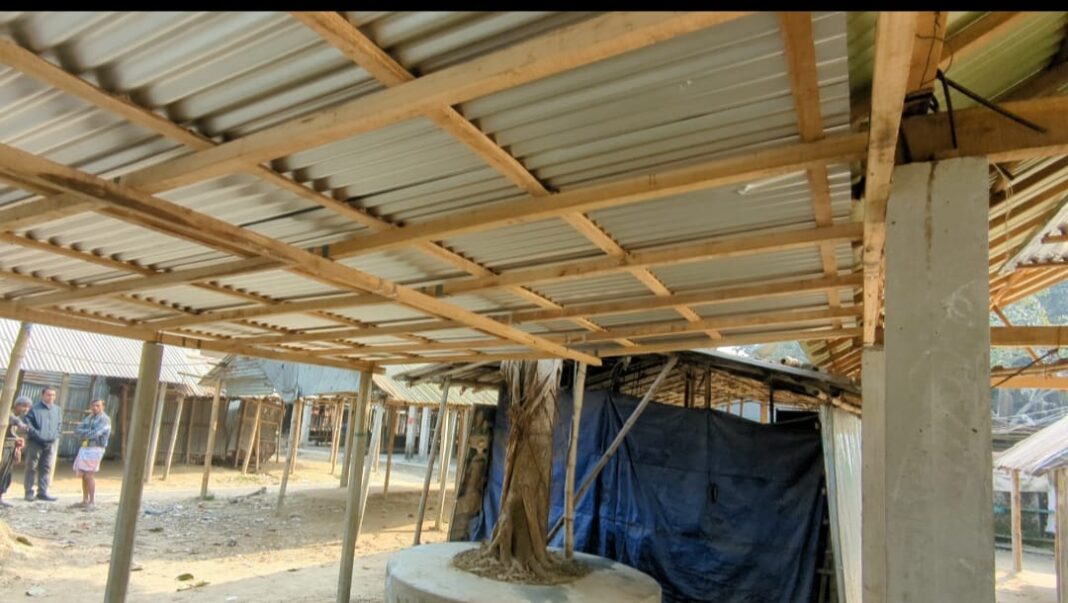 সোমবার (১৩ জানুয়ারি)বিকেলে সরেজমিনে গিয়ে দেখা যায়,মোঃ রানা নামে ব্যক্তি হাটে টিনের চালা দিয়ে দোকান ঘর নির্মাণ কাজ করছে।