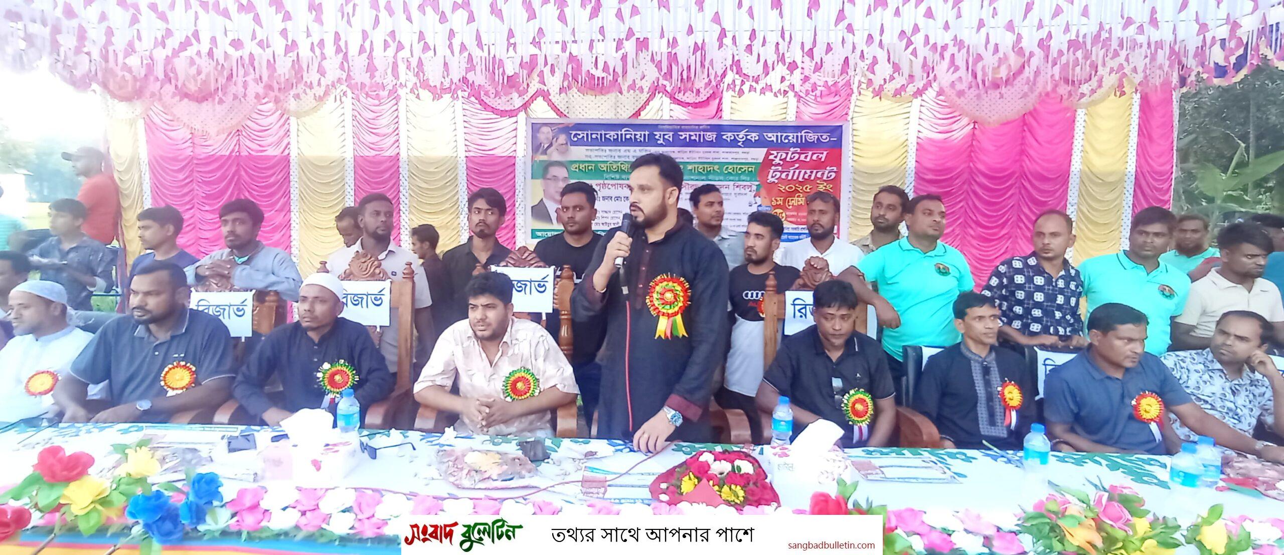 বগুড়ার শাজাহানপুরে সোনাকানিয়া যুব সমাজের আয়োজনে ফুটবল টুর্নামেন্ট ২০২৫-এর প্রথম সেমিফাইনাল বুধবার (৫ নভেম্বর) বিকেল ৪টায় অনুষ্ঠিত হয়।