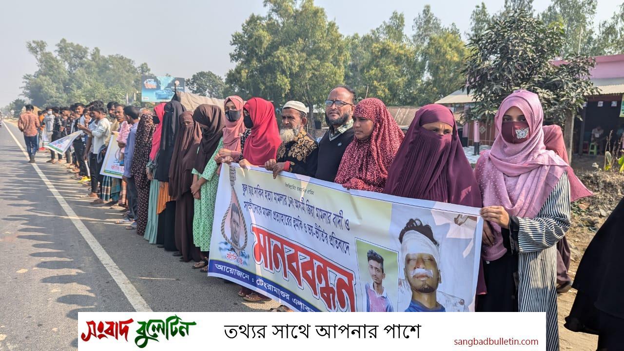 শাজাহানপুরে হত্যা মামলার আসামির ফাঁসির দাবিতে মানববন্ধন