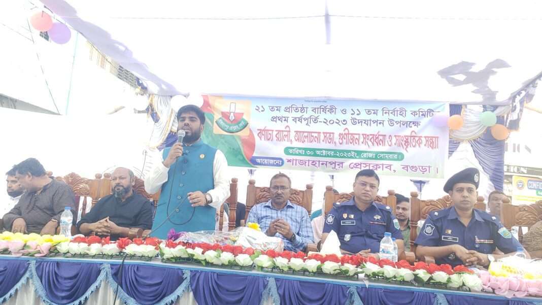 ৩০ অক্টোবর সোমবার বেলা ১১.৩০ মিনিটে শাজাহানপুর প্রেসক্লাব থেকে শুরু করে উপজেলা ও আশেপাশে সড়ক প্রদক্ষিণ করে র্যালি শেষে আলোচনা সভা অনুষ্ঠিত হয়।