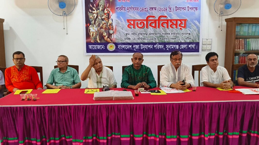 বাংলাদেশ পূজা উদযাপন পরিষদ সুনামগঞ্জ জেলা শাখার সভাপতি এ্যাড. বিমান কান্তি রায়’র সভাপতিত্বে এবং সাধারণ সম্পাদক বিমল বনিক’র সঞ্চালনায় বক্তব্য রাখেন,