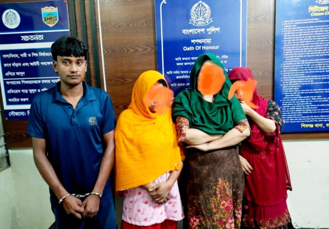 আটককৃতরা হলেন—উপজেলার বিহার পশ্চিম পাড়া গ্রামের রুলি বেগম (৩৫), খুলনার বিথি আক্তার (২৪), শেরপুর জেলার নালিতাবাড়ী এলাকার সাথী আক্তার (৩৫) এবং কাজিতলা এলাকার আব্দুল আলিম (২৭)।