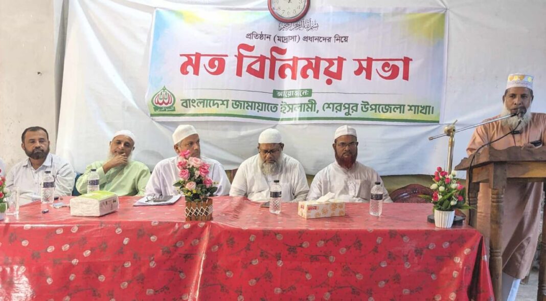 বগুড়ার শেরপুরে বাংলাদেশ জামায়াতে ইসলামীর আয়োজনে মাদ্রাসা প্রধানদের নিয়ে মত বিনিময় সভা অনুষ্ঠিত হয়েছে। রবিবার (১৩ অক্টোবর) বেলা ১১ টায় উপজেলা জামায়াতের কার্যালয়ে এই মতবিনিময় সভা অনুষ্ঠিত হয়।