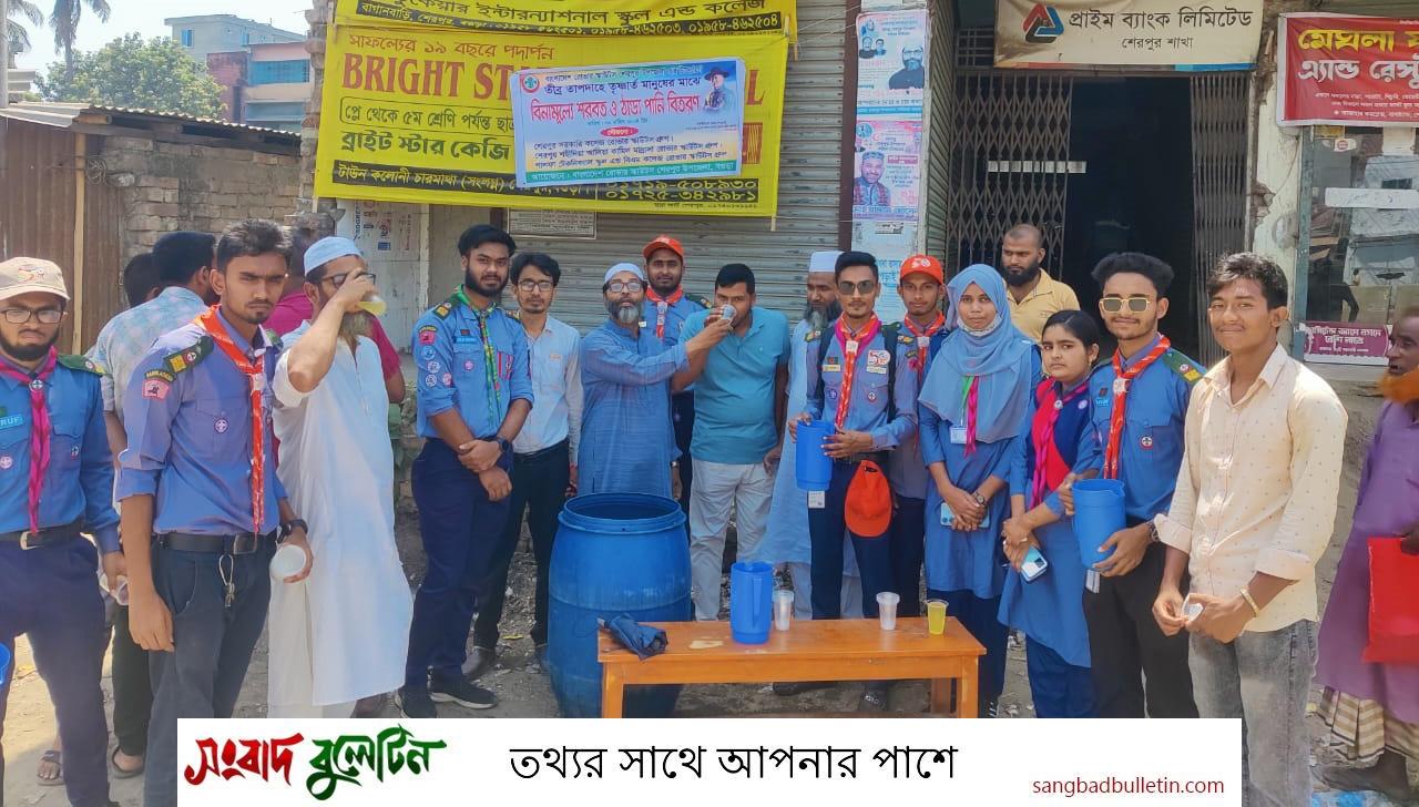 শেরপুরে রোভার স্কাউটস’র উদ্দ্যোগে শরবত ও ঠান্ডা পানি বিতরণ