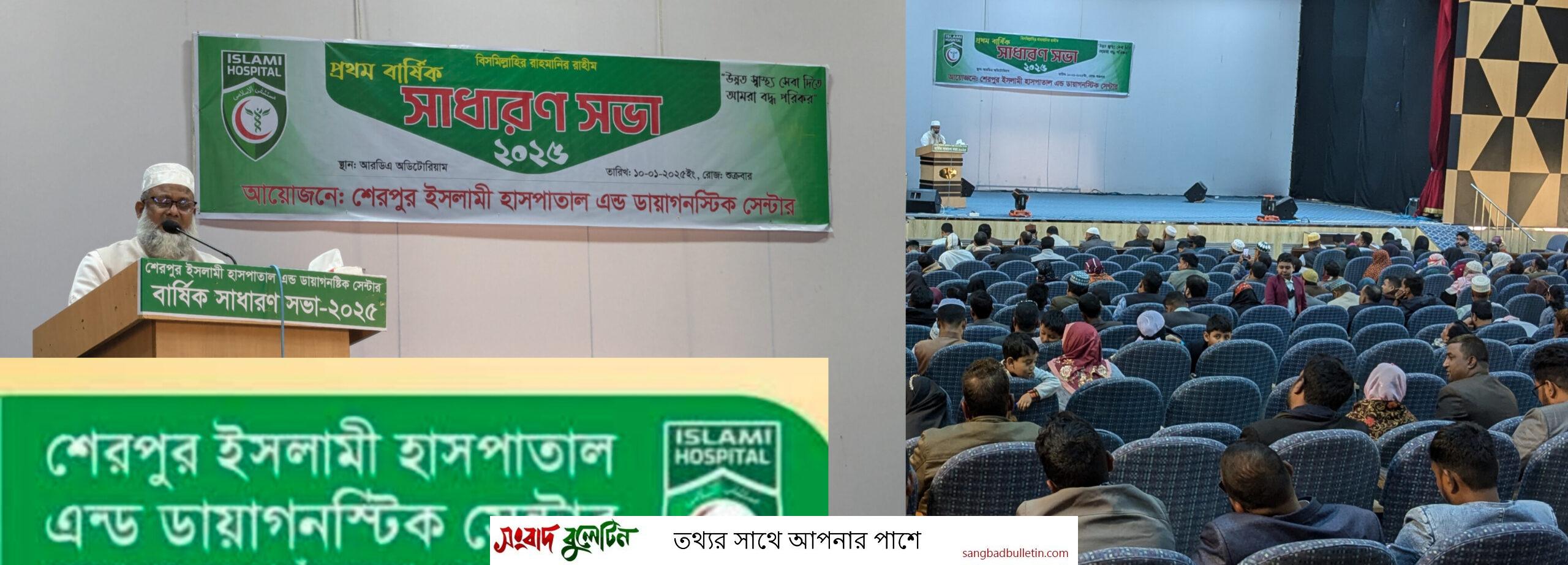 'উন্নত স্বাস্থ্য সেবা দিতে আমরা বদ্ধ পরিকর'এই স্লোগানে বগুড়া শেরপুরে অবস্থিত শেরপুর ইসলামী হাসপাতাল এন্ড ডায়াগনস্টিক সেন্টারের প্রথম বার্ষিক সাধারণ সভা অনুষ্ঠিত হয়েছে।