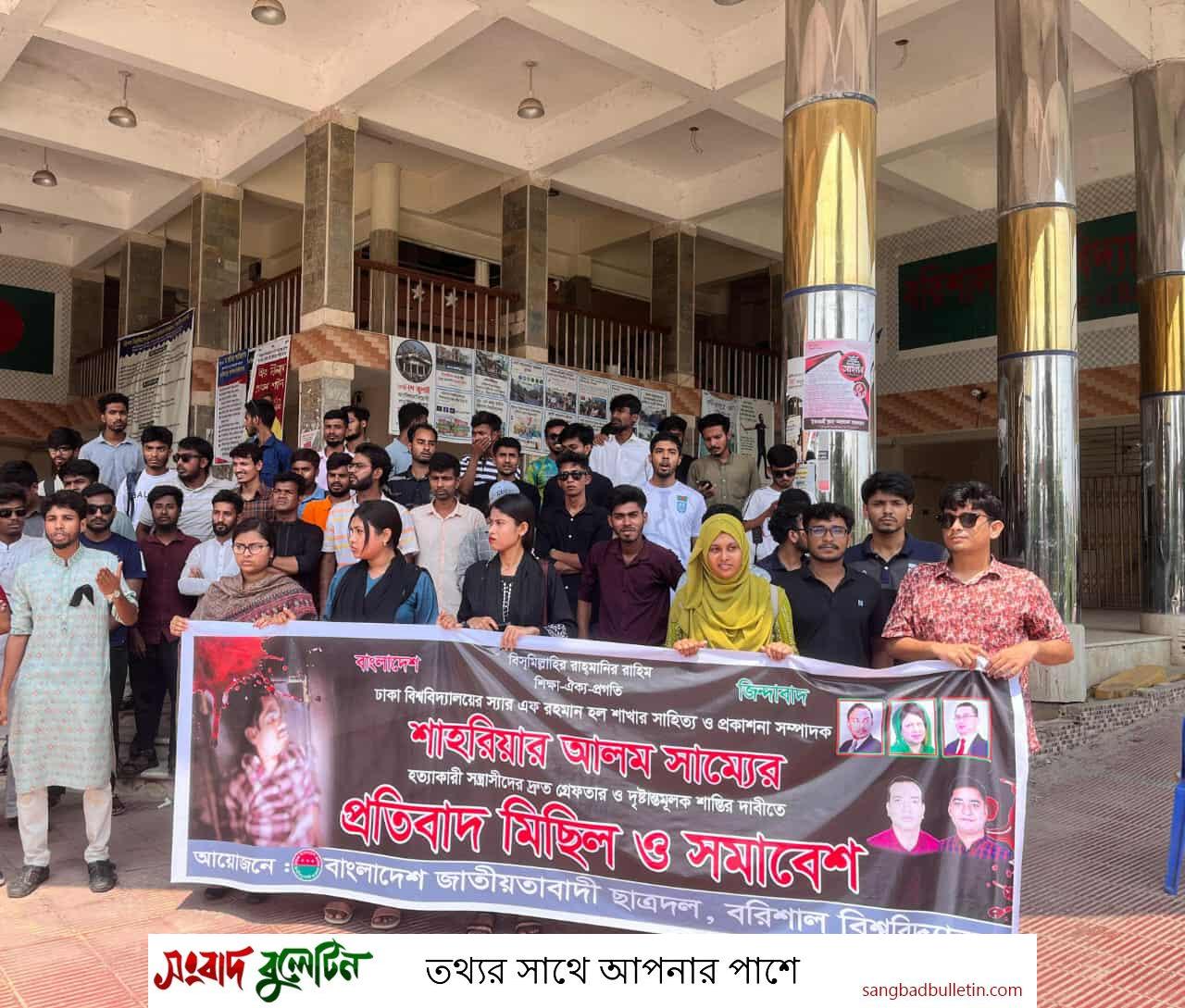 সাম্য হত্যার প্রতিবাদে বরিশাল বিশ্ববিদ্যালয়ে ছাত্রদলের বিক্ষোভ মিছিল ও প্রতিবাদ সমাবেশ