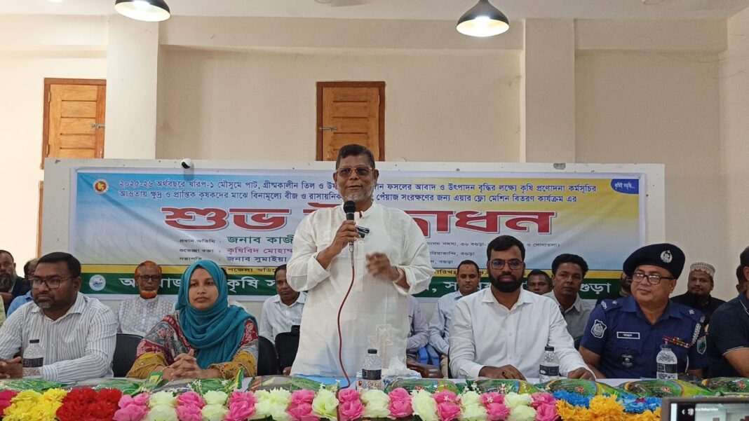 নির্বাচনের আগের প্রতিশ্রুতি বাস্তবায়নে বিএনপি সরকার কাজ করে যাচ্ছেন। প্রধানমন্ত্রী ও বিএনপির চেয়ারম্যান তারেক রহমান আমাদের সারিয়াকান্দি-সোনাতলার বিভিন্ন সমস্যার সম্পর্কে অবগত আছেন। যা তিনি নিজেই সংসদে উপস্থাপন করেছেন। তার হাত ধরেই এবং আপনাদের সহযোগিতায় আগামী পাঁচ বছরে সেগুলো কাজ একটা একটা করে বাস্তবায়ন করা হবে। ২০০১ থেকে ২০০৬ সাল পযর্ন্ত চরাঞ্চলের যেসব উন্নয়ন হয়েছে তারপরবর্তী সেখানে দৃশ্যমান কোনো উন্নয়ন হয়নি । সারিয়াকান্দি-সোনাতলার মাটিতে অবৈধভাবে বালু উত্তোলনসহ যতগুলো অবৈধ কাজ রয়েছে সেগুলো আর হতে দেওয়া হবেনা। আর এজন্যে আপনাদের সোজাগ থাকতে হবে এবং তথ্য দিয়ে সহযোগিতা করতে হবে। সারিয়াকান্দি উপজেলা কৃষি সম্প্রসারণ অধিদপ্তের আয়োজনে বিনামূল্যে সার-বীজ ও এয়ার ফ্লো মেশিন বিতরণ অনুষ্ঠানে প্রধান অতিথির বক্তব্যে তিনি উপরোক্ত কথাগুলে বলেন বগুড়া-১ (সারিয়াকান্দি-সোনতলা) আসনের সংসদ সদস্য আলহাজ্ব কাজী রফিকুল ইসলাম। সারিয়াকান্দিতে ২০২৫-২৬ অর্থবছরে খরিপ-১ মৌসুমে পাট, গ্রীষ্মকালীন তিল ও উপশী আউশ ধান ফসলের আবাদ ও উৎপাদন বৃদ্ধির লক্ষে প্রণোদনা কর্মসূচির আওতায় ১ হাজার ৮১৪জন ক্ষুদ্র ও প্রান্তিক কৃষকদের মাঝে বিনামূল্যে বীজ ও রাসায়নিক সার এবং ৪ জন কৃষকের মাঝে বিনামুল্যে পেঁয়াজ সংরক্ষণের জন্যে এয়ার ফ্লো মেশিন বিতরণ কার্যক্রমের শুভ উদ্বোধন করা হয়েছে। এর মধ্যে ১ হাজার ৫০০ কৃষকের মাঝে ধান বীজ, ৪০ জন কৃষকে তিল বীজ, ২৭০ জন কৃষকে পাট এবং ৪ জন কৃষকের মধ্েয পেঁয়াজ সংরক্ষণের জন্েয এয়ার ফ্লো মেশিন বিতরণ করা হয়। গতকাল রবিবার সকালে উপজেলা পরিষদ হল রুমে
