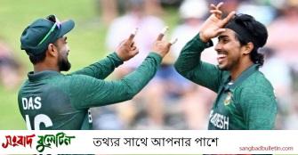 টাইগারদের হয়ে এদিন তাসকিন, মাহেদি, মুস্তাফিজ ও সৌম্য একটি করে উইকেট লাভ করেন।