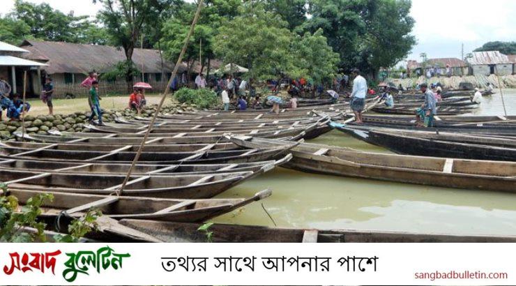 সুনামগঞ্জের হাওরে নৌকার হাট জমজমাট