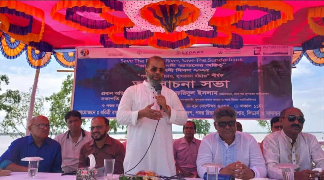 রবিবার সকাল ১১টায় বিশ্ব নদী দিবসের আলোচনা সভায় সভায় সভাপতিত্ব করেন পশুর রিভার ওয়াটারকিপার ও সুন্দরবন রক্ষায় আমরা’র সমন্বয়কারী পরিবেশযোদ্ধা মোঃ নূর আলম শেখ।