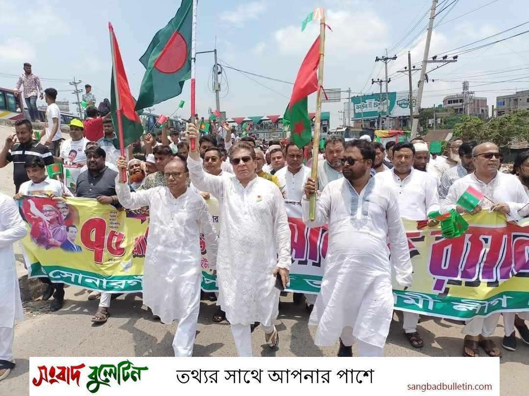 বিপুল উৎসাহ ও উদ্দীপনার মধ্য দিয়ে নারায়ণগঞ্জ সোনারগাঁয়ে বাংলাদেশ আওয়ামীলীগের ৭৫তম প্রতিষ্ঠা বার্ষিকী উপলক্ষে আনন্দ র্যালী ও আলোচনা সভা অনুষ্ঠিত হয়েছে।