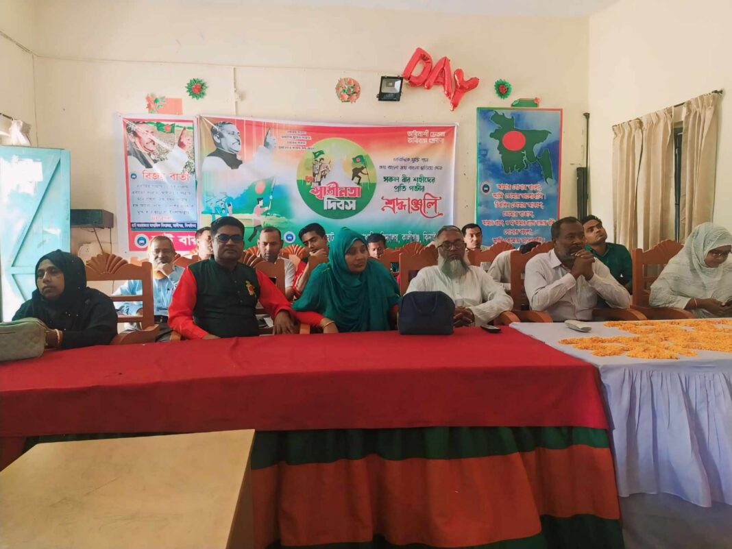 বিদ্যালয়ের প্রধান শিক্ষক জনাব রফিকুল ইসলাম এর সভাপতিত্বে প্রধান অতিথি হিসেবে উপস্থিত ছিলেন নতুন ম্যানেজিং কমিটির সভাপতি জনাব নজরুল ইসলাম।তিনি বলেন শিক্ষার্থীরা তোমরা স্বাধীনতার চেতনা বুকে ধারণ করে আগামী দিনের দেশ গড়ার কারিগর হবে। প্রধান শিক্ষক বলেন মহান স্বাধীনতা আমাদের গর্ব এই স্বাধীনতার জন্য বুকে তাজা রক্ত ঢেলে দিয়েছিল দেশের বীরশ্রেষ্ঠরা। তোমরা এই স্বাধীনতাকে লালন করবে।এসময় উপস্থিত ছিলেন বিদ্যালয়ের সকল শিক্ষক ও কর্মচারীরা।