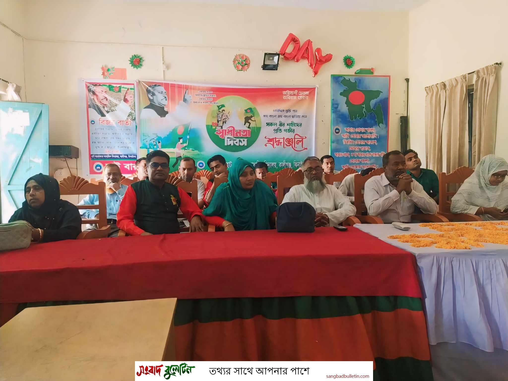 বিদ্যালয়ের প্রধান শিক্ষক জনাব রফিকুল ইসলাম এর সভাপতিত্বে প্রধান অতিথি হিসেবে উপস্থিত ছিলেন নতুন ম্যানেজিং কমিটির সভাপতি জনাব নজরুল ইসলাম।তিনি বলেন শিক্ষার্থীরা তোমরা স্বাধীনতার চেতনা বুকে ধারণ করে আগামী দিনের দেশ গড়ার কারিগর হবে। প্রধান শিক্ষক বলেন মহান স্বাধীনতা আমাদের গর্ব এই স্বাধীনতার জন্য বুকে তাজা রক্ত ঢেলে দিয়েছিল দেশের বীরশ্রেষ্ঠরা। তোমরা এই স্বাধীনতাকে লালন করবে।এসময় উপস্থিত ছিলেন বিদ্যালয়ের সকল শিক্ষক ও কর্মচারীরা।