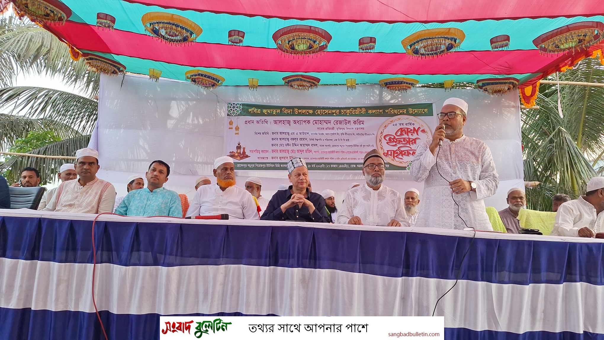 আলহাজ্ব মোঃ মতিন সাহেবের সভাপতিত্বে,প্রধান অতিথি হিসেবে উপস্থিত ছিলেন,হোসেনপুর জনকল্যাণ সমিতির সভাপতি আলহাজ্ব মোঃ বজলুর রহমান সিআইপি,সাবেক পরিচালক এফবিসিসিআই চেয়ারম্যান এম আর গ্রুপ।