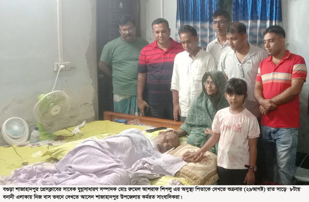 সাংবাদিক শিপলুর অসুস্থ পিতাকে দেখতে গিয়ে উপস্থিত ছিলেন— শাজাহানপুর প্রেসক্লাবের সাবেক সাধারণ সম্পাদক ও সংবাদ বুলেটিনের সম্পাদক নজরুল ইসলাম মিলন, সংবাদ বুলেটিনের প্রকাশক ও চেয়ারম্যান মো. মঞ্জুরুল ইসলাম রিপন, প্রেসক্লাবের সাবেক সহ-সভাপতি ও দৈনিক আজকের পত্রিকা-এর উপজেলা প্রতিনিধি আরিফুর রহমান মিঠু ও তাঁর মেয়ে আরিফ জাহান স্বপ্ন, প্রেসক্লাবের সাবেক কোষাধ্যক্ষ দুলাল আহম্মেদ এবং সাংবাদিক মিজানুর রহমান মিলনসহ আরও অনেকে।