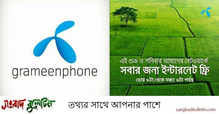 কোনো ধরনের রিচার্জ কিংবা প্যাক কেনা ছাড়াই ইন্টারনেট চালানোর সুযোগ দিয়েছে গ্রামীণফোন। এই সুযোগের আওতায় আজ (শুক্রবার) এবং আগামীকাল (শনিবার) সকাল ছয়টা থেকে সন্ধ্যা ছয়টা পর্যন্ত ১২ ঘণ্টা করে মোট ২৪ ঘণ্টা গ্রামীণফোন গ্রাহকরা পুরোপুরি বিনামূল্যে ইন্টারনেট চালাতে পারবেন।